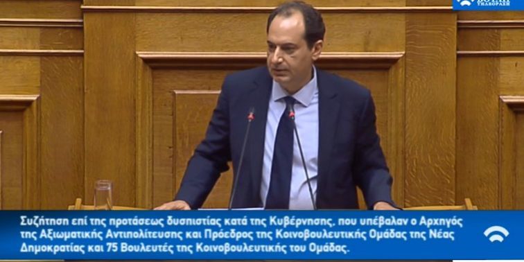 Η ομιλία κατά τη συζήτηση επί της προτάσεως δυσπιστίας κατά της κυβέρνησης που υπέβαλε η Νέα Δημοκρατία.